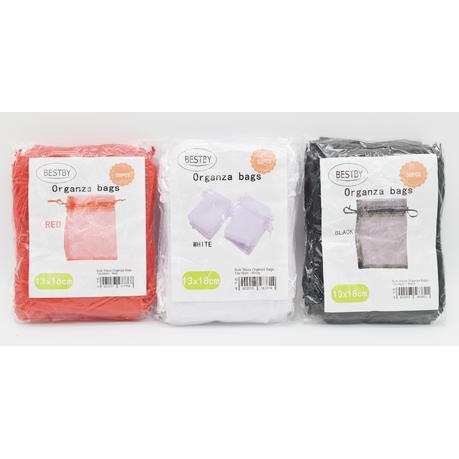 Bestby – Bulk 50pcs Organza Bags – 13x16cm – Black – Red