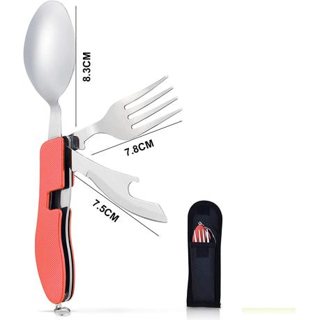 Portable 4-in-one Stainless Steel Travel Tableware; Multifunctional Folding Tableware; Travel Tableware. Product Features: – High Quality Material: The tableware is made of stainless steel and is anti-rust; Therefore, it is also durable and easy to clean; Comes with belt nylon pouch; Easy to carry. Multi-functional: The camping tool has 5 functions, such as fork, spoon,…