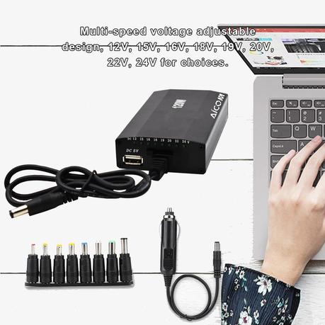 Product Features: – Power Charger: 120W universal notebook power adapter with 8pcs DC adapters, almost suitable for all common laptops. Aluminum alloy case with overheat protection, overload protection, short circuit protection function. Output Voltage: Multi-speed voltage adjustable design, 12V, 15V, 16V, 18V, 19V, 20V, 22V, 24V for choices. With USB Interface: It has one USB…