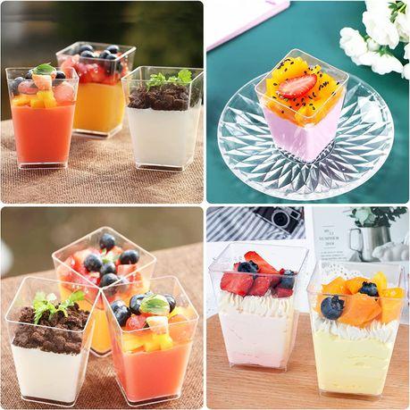 Product Features: – Sturdy and Safety: Made of high quality food safe plastic, BPA free, no odor, not easy to scratch, crack and deform Multi-Functional: Clear square desserts cups are perfect for displaying delicious desserts, puddings, mousses, sorbets, tiramisu, cocktails, fruit, cakes, ice cream, smoothies, jellies, yogurt etc. It can be used at home, parties…