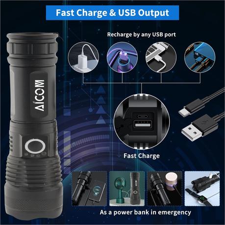 AICOM – Aluminum Alloy Rechargeable Long Last Torch with Zoom Function