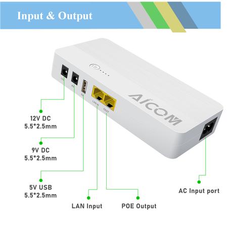 AICOM – Mini DC UPS for Wifi Router with Latest Battery 21700 Lasting 8 Hrs