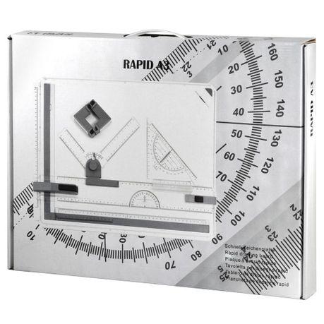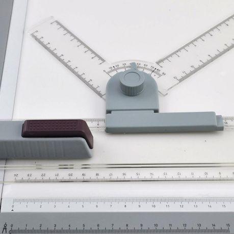 Drafting head-lock mechanism for straightedge and free-swing setting. Set square is marked with a protractor. Made of premium high-impact Acrylic.