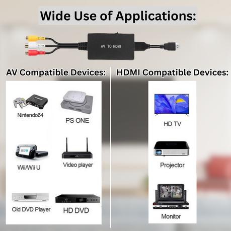 - Seamless RCA to HDMI Conversion: Converts analog RCA (composite) signals into digital HDMI output at up to 1080p, enabling your classic devices to work with modern HDTVs, monitors, and projectors.