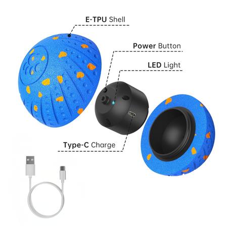 AICOM – Rechargable Smart Wiggle & Light-Up Pet Toy Ball Dog Cat Play Ball – Blue
