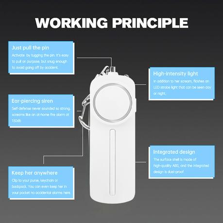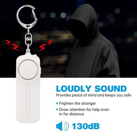 AICOM – 130db Portable Emergency Safety Alarm with LED Light Keychain – White