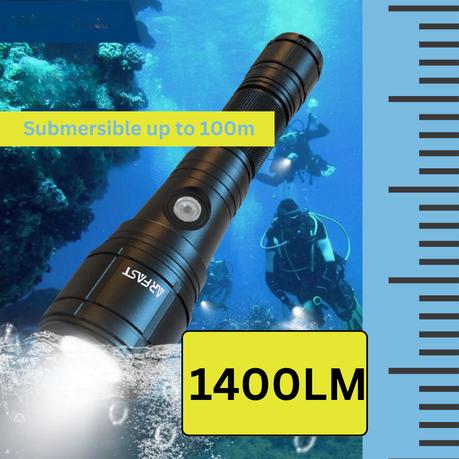 ARFAST – 1400LM Zoomable Scuba Diving Torch Flashlight for Underwater 100m