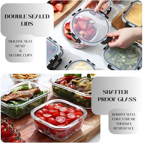 Bestby 12-Pieces Stackable & Leak-Proof Glass Food Storage Set